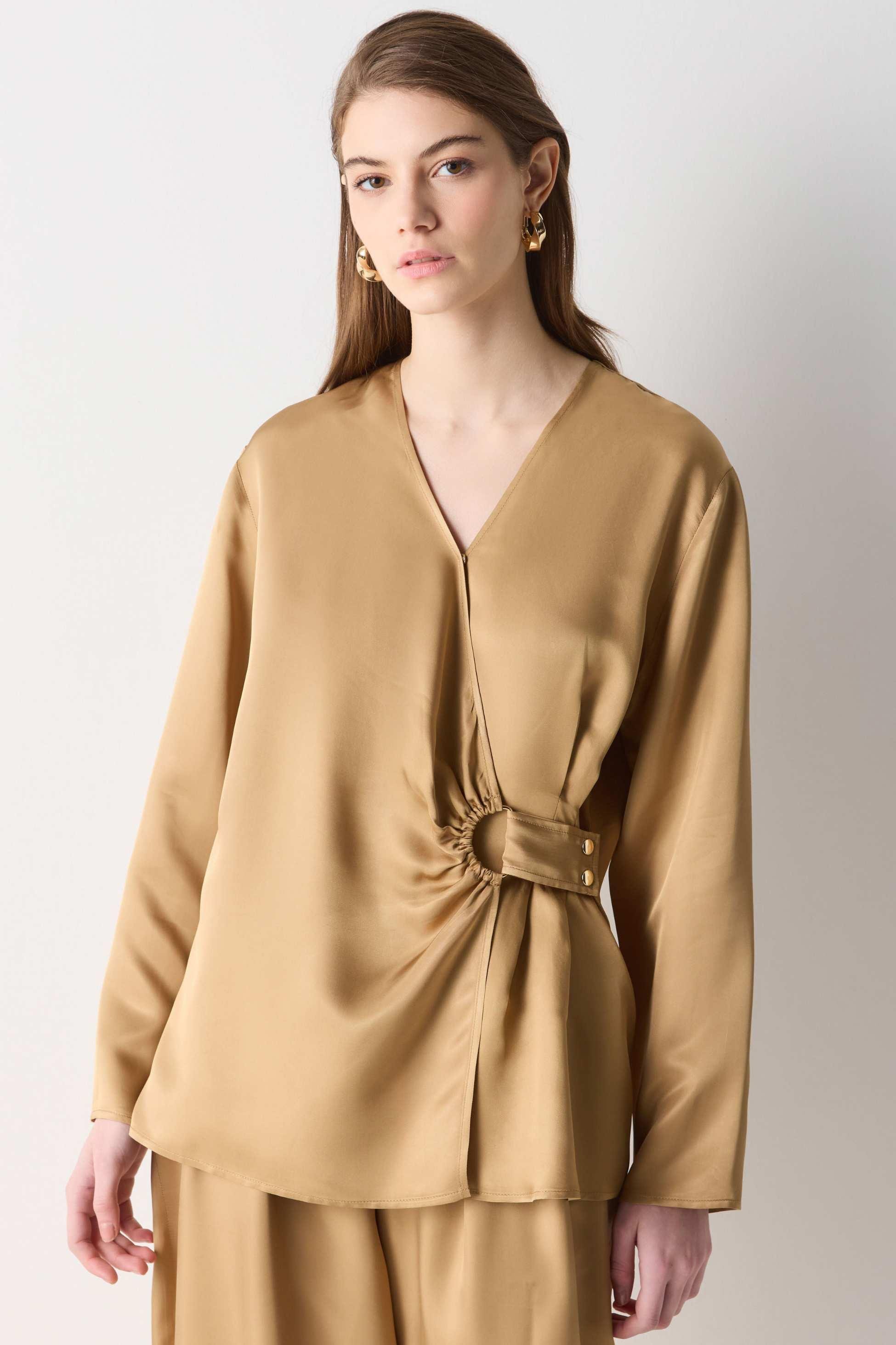 IPEKYOL Naturel Metal Aksesuarlı Bluz