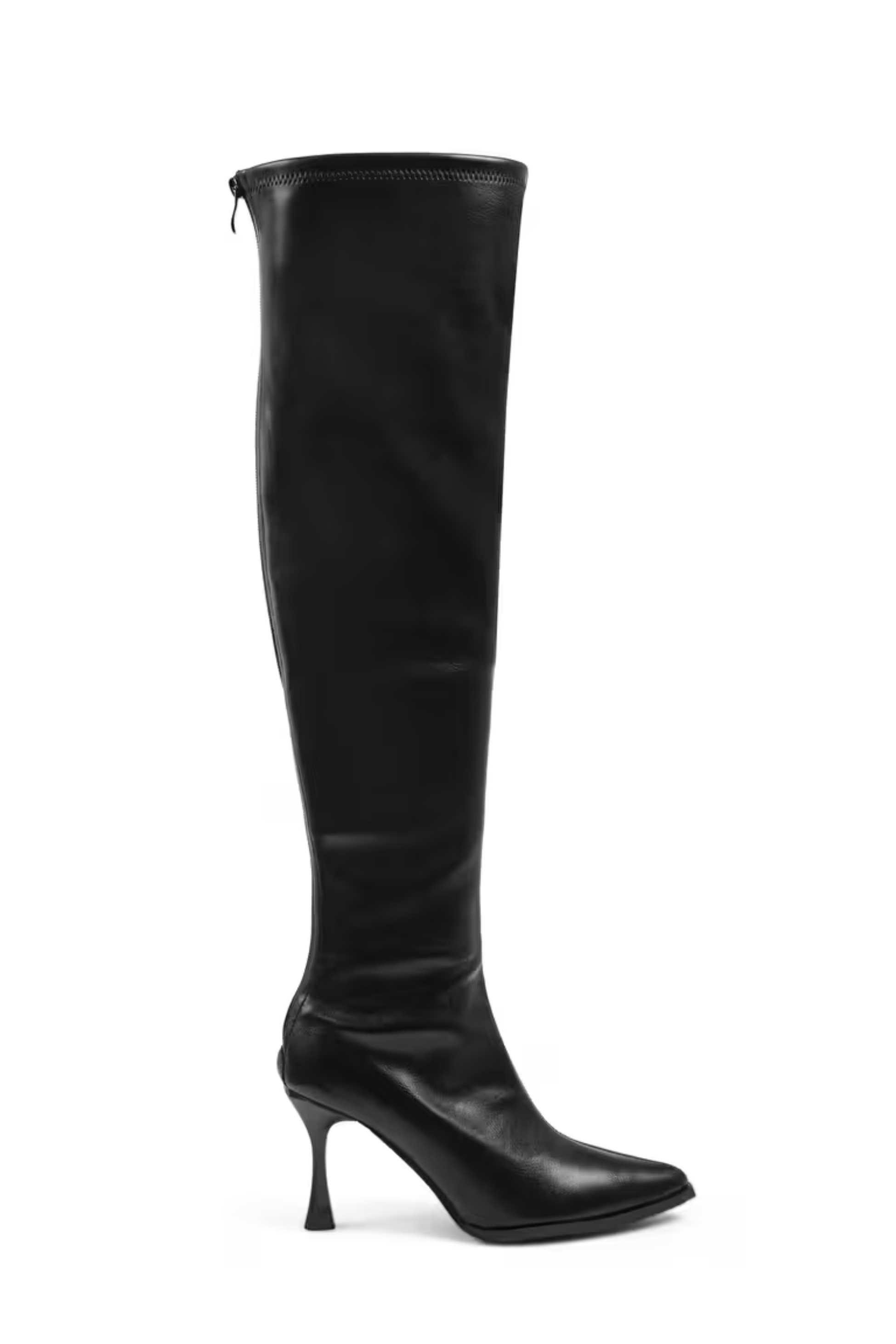 IPEKYOL Siyah Deri Görünümlü Topuklu Çizme