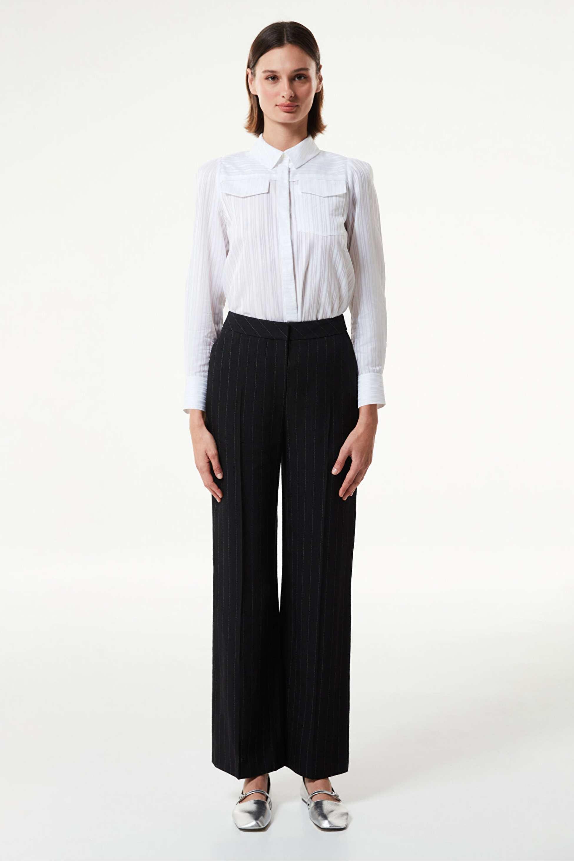 Sezonun favori dokusu ekseninde stil oyununa dahil olan pantolon, modern straight fit kalıbı ile dikkat çekiyor. Ütü izli pantolonu takımı olan ceketle kombinleyerek total look bir kombin elde edebilirsiniz.