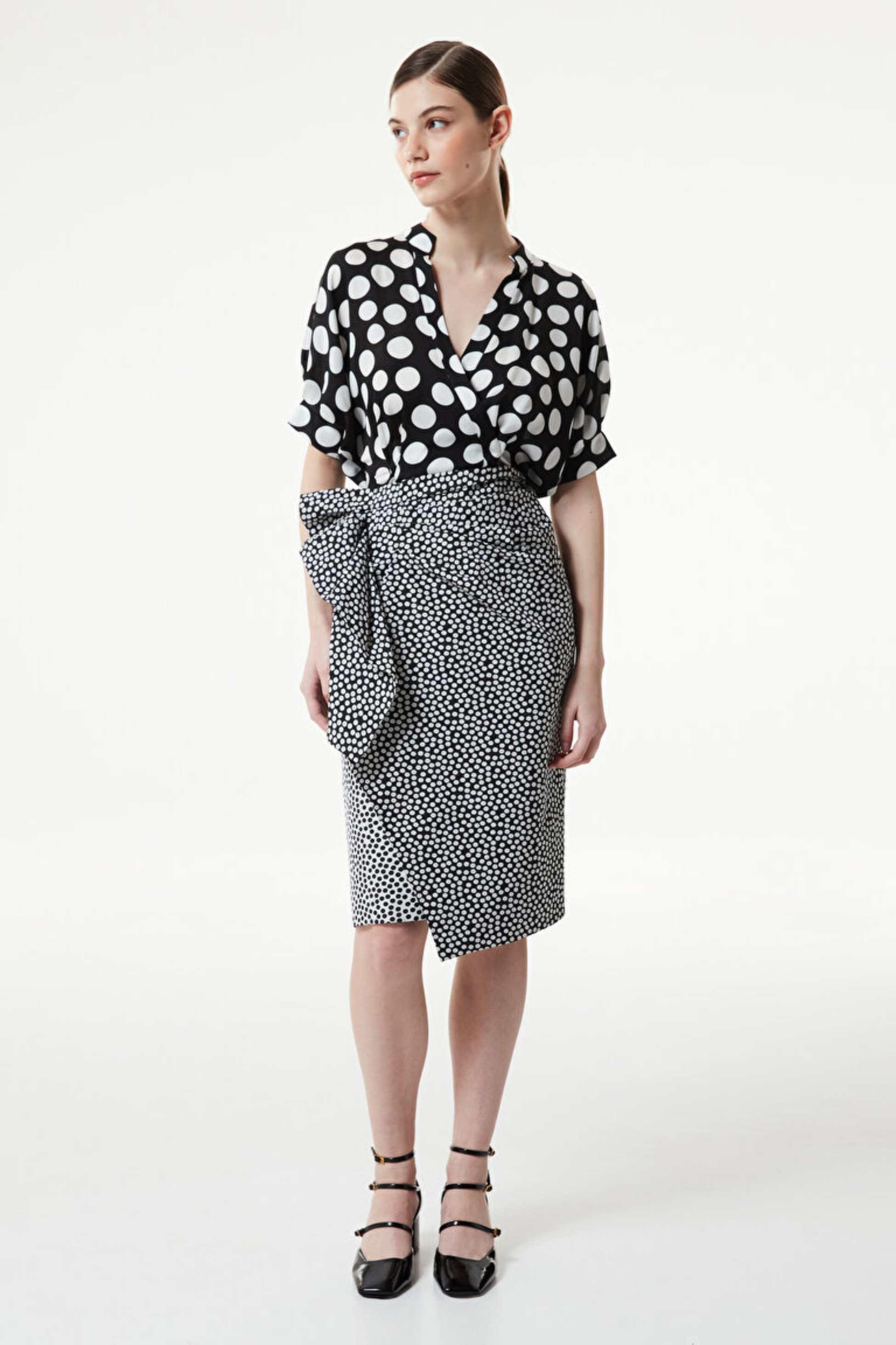 MACHKA Siyah Puantiye Desen Colorblock Etek
