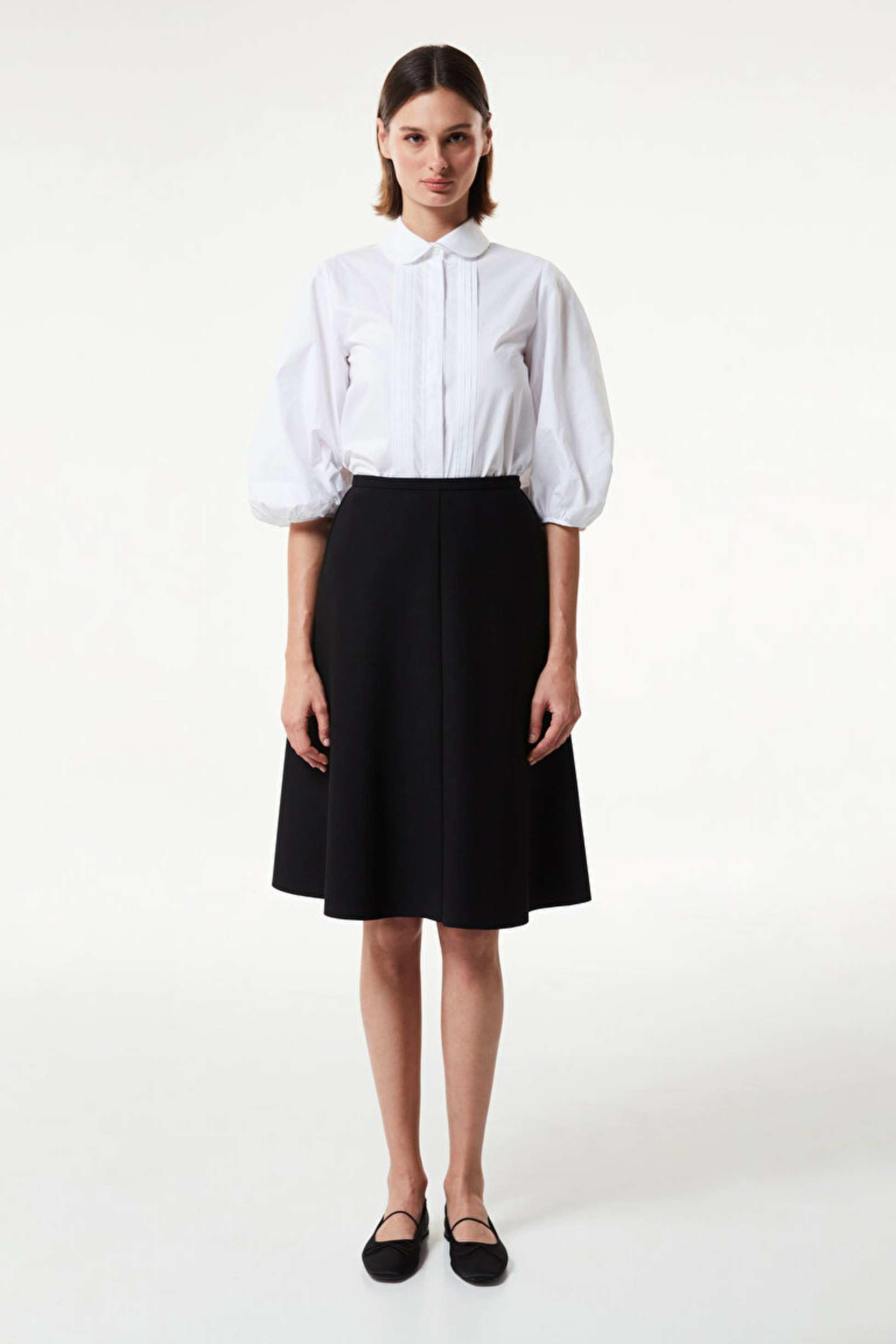 Her kadının gardırobunun olmazsa olmazı midi etekleri radarınıza alın. Minimal tasarım çizgisi ile stil oyununa dahil olan dikiş detaylı eteği gömleklerden bluzlara kadar birçok ürünle kombinleyebilirsiniz.