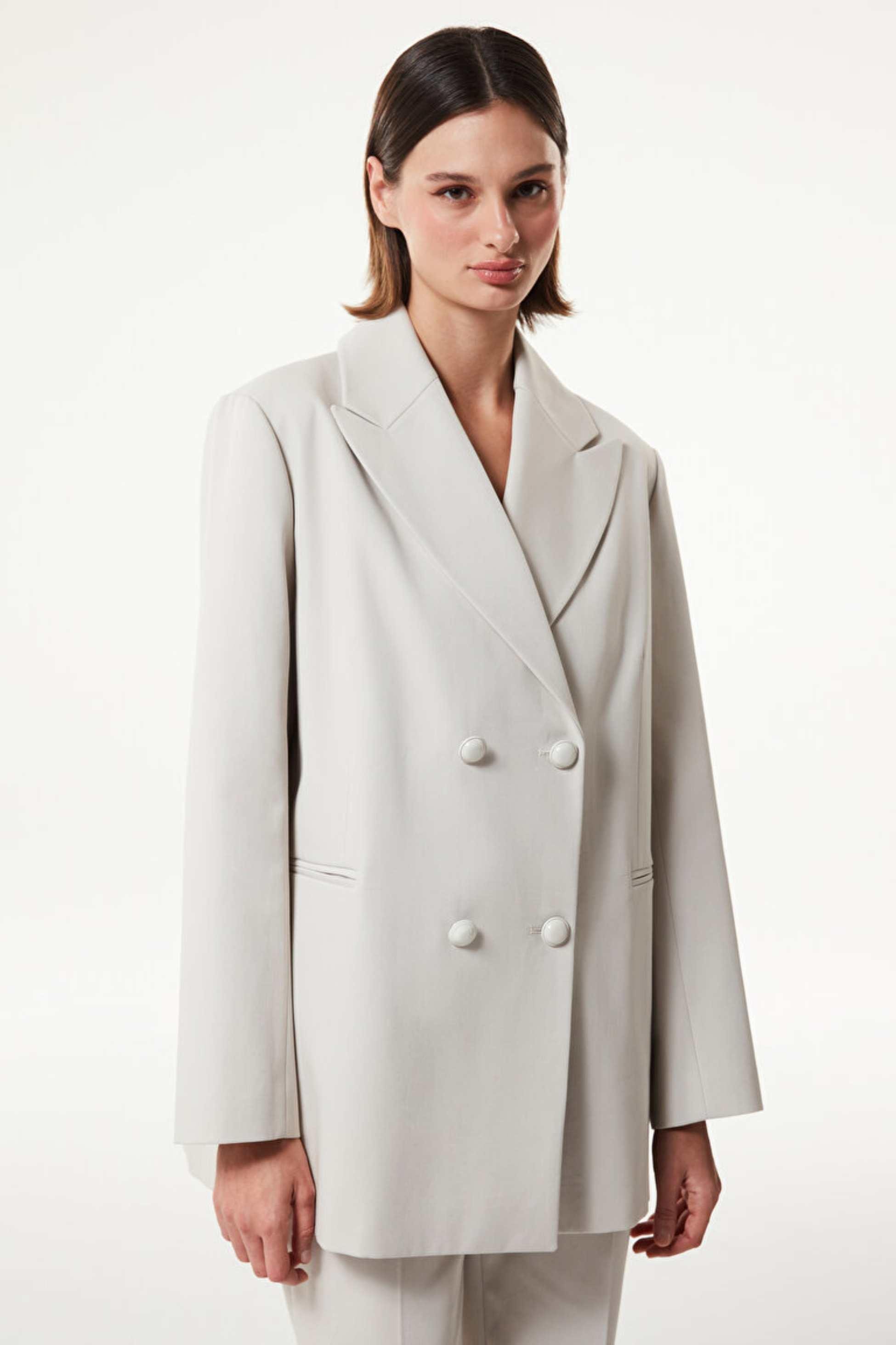 Yalın duruşu ve nahif rengi ile farklı kombinlere hızla adapte olabilen bir parça. Fleto cepleri ile detaylanan vatkalı blazer'ı takımı olan pantolonun yanı sıra klasik kesim eteklerle de tamamlayabilirsiniz.