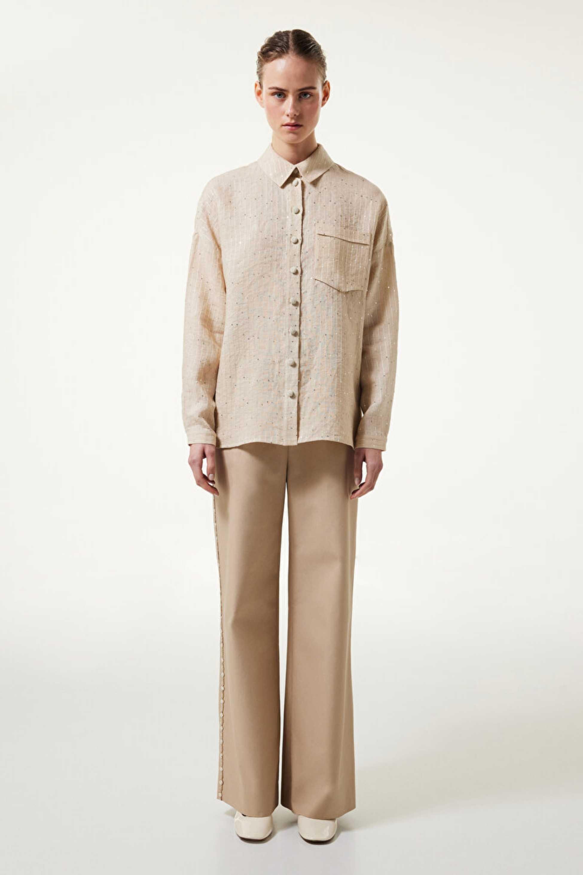 Zarafet oyununa davet eden detaylar, mevsim stillerinin ekseninde... Tüm silüeti etkisi altına alan payet işlemeri ile hareket kazanan cepli tunik, rahat kesimi ile aynı zamanda konforlu bir seçenek.