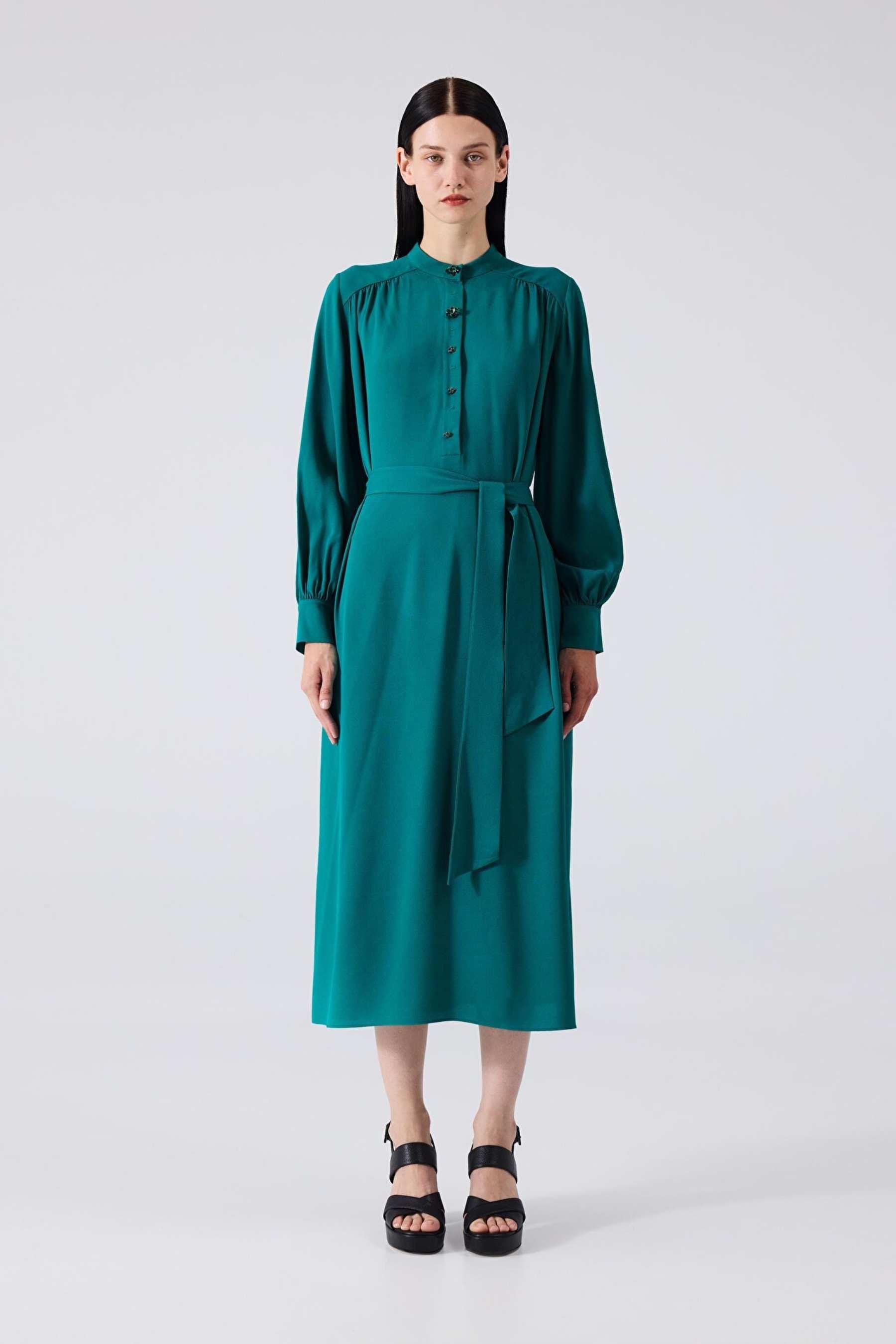 MACHKA Yeşil Kuşaklı Hakim Yaka Elbise