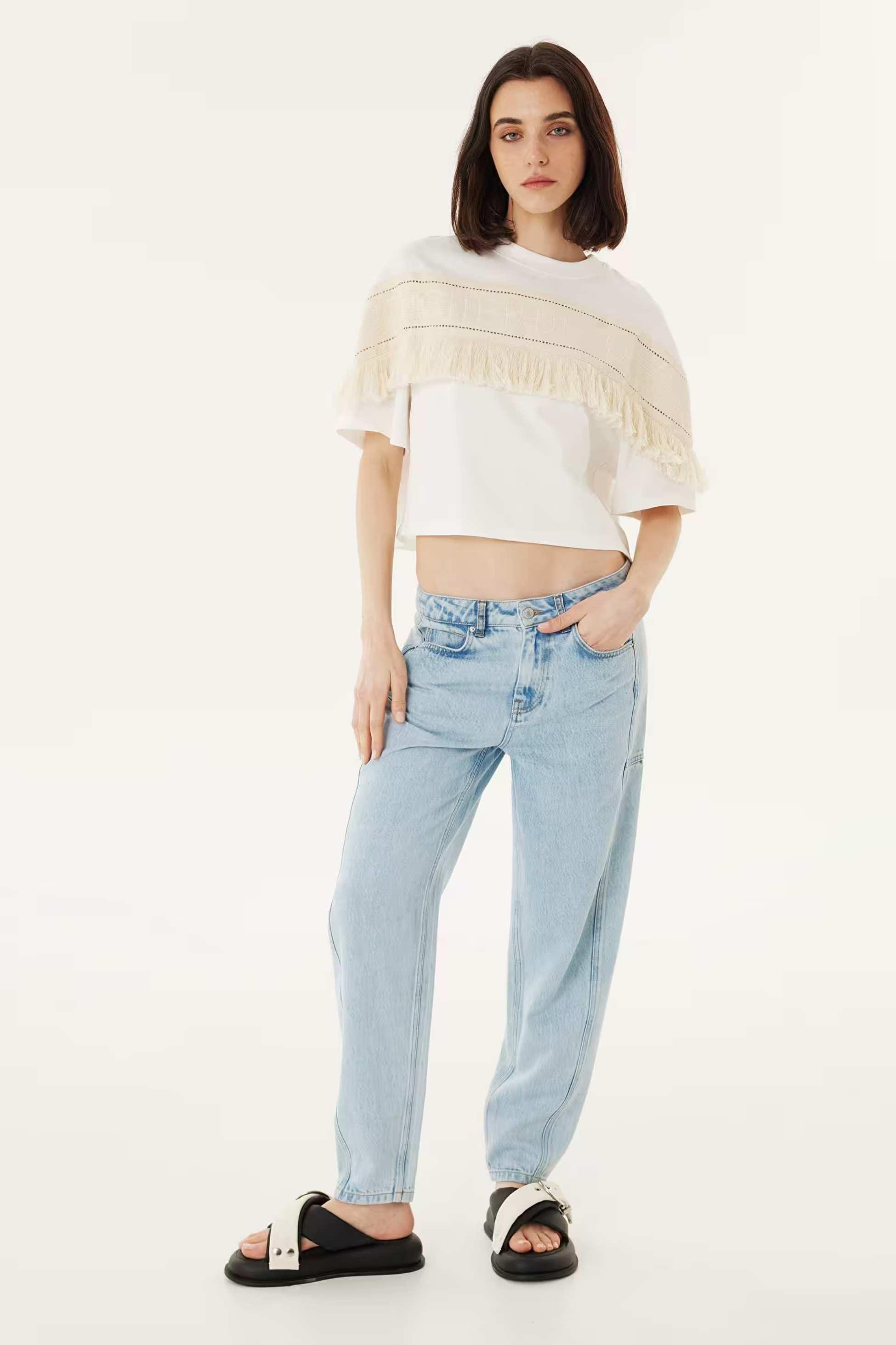 Mom fit kalıba sahip pantolonlar, bu sezon da cool ve özgün görünümlerde başrolü üstleniyor. Slogan veya görsel baskılı t-shirt'lerle kombinlendiğinde ideal bir silüet yaratan pantolonu, çarpıcı aksesuarlarla tamamlayabilirsin.