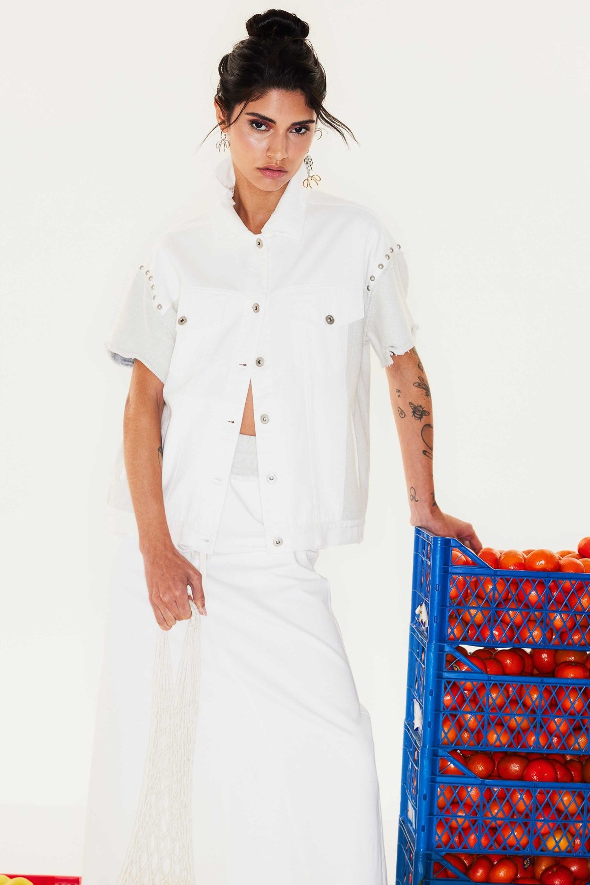 Trend listesinin zirvesinde yer alan yeleklere Twist dokunuşu… Raw edge detaylı, non denim yeleği takımı mini etekle kombinle, total look bir silüete imza at Twister!